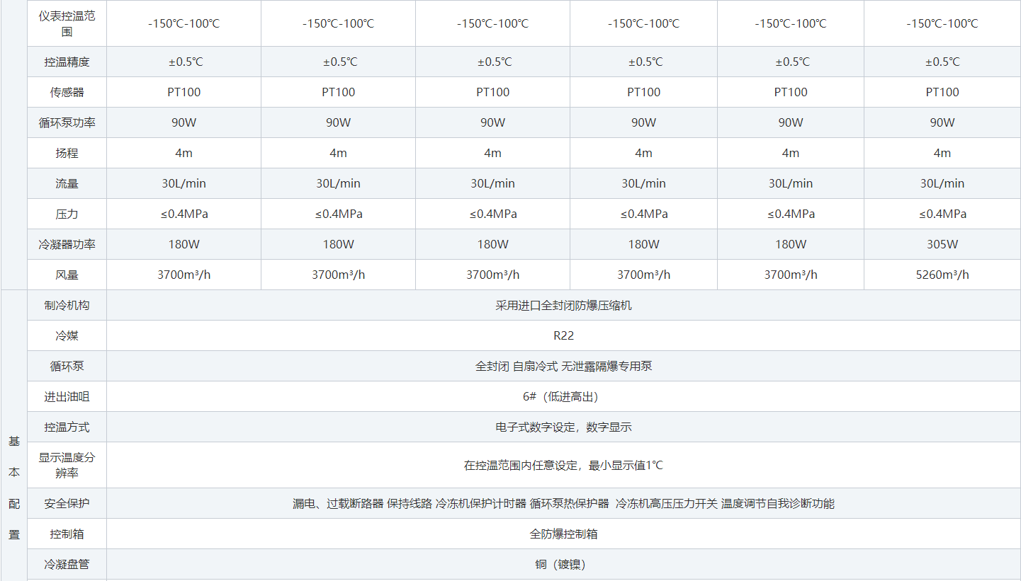 EXDLSB-50L/-20~-120℃防爆低溫冷卻液循環泵,容量為50升,提供低溫-20℃~-120℃各類產品,防爆型低溫冷卻液循環泵設備內的所有電氣控製元件均放置在防隔爆型的電器箱內,外部沒有任何電氣控製部件。采用特殊定製的隔爆型冷凝風機和大流量的隔爆型循環水泵。使整個設備達到爆炸環境的使用要求。